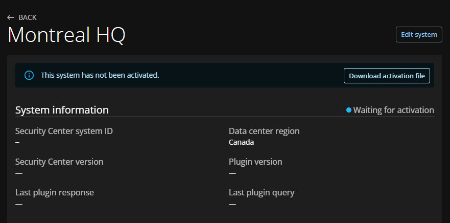 Se ha creado su nuevo sistema. El sistema permanece inactivo hasta que descargue un archivo de activación y registre el plugin de ClearID.
