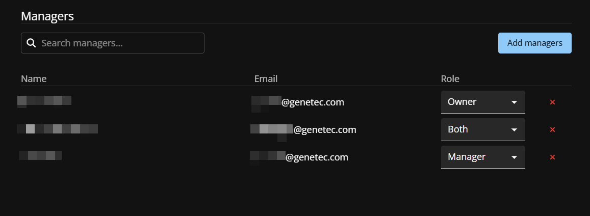 - Solo los propietarios del área o los propietarios del sitio pueden agregar propietarios del área y gerentes de área en Genetec ClearID.™