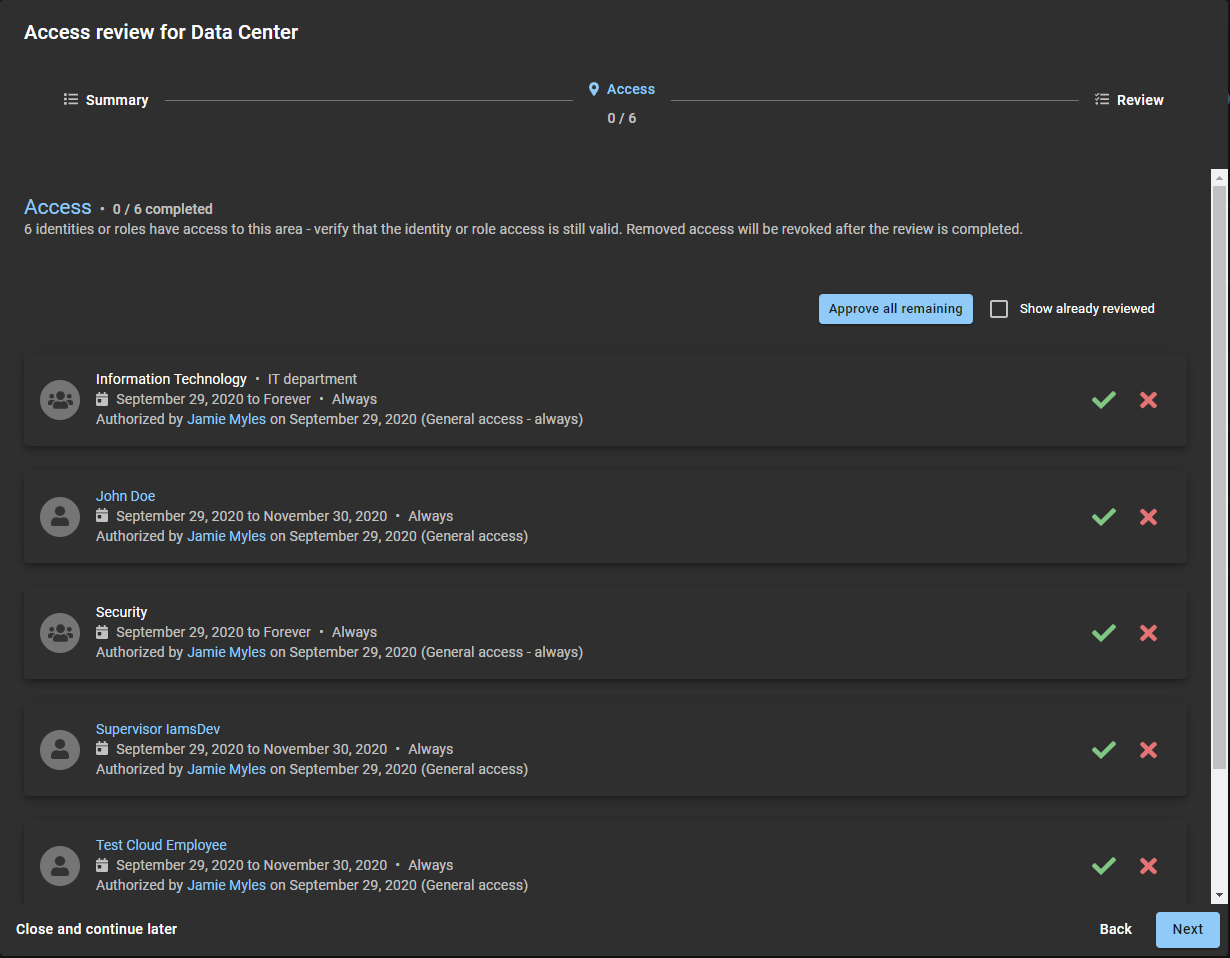 4. Haga clic en Siguiente para continuar con la siguiente sección del asistente de revisión de acceso.