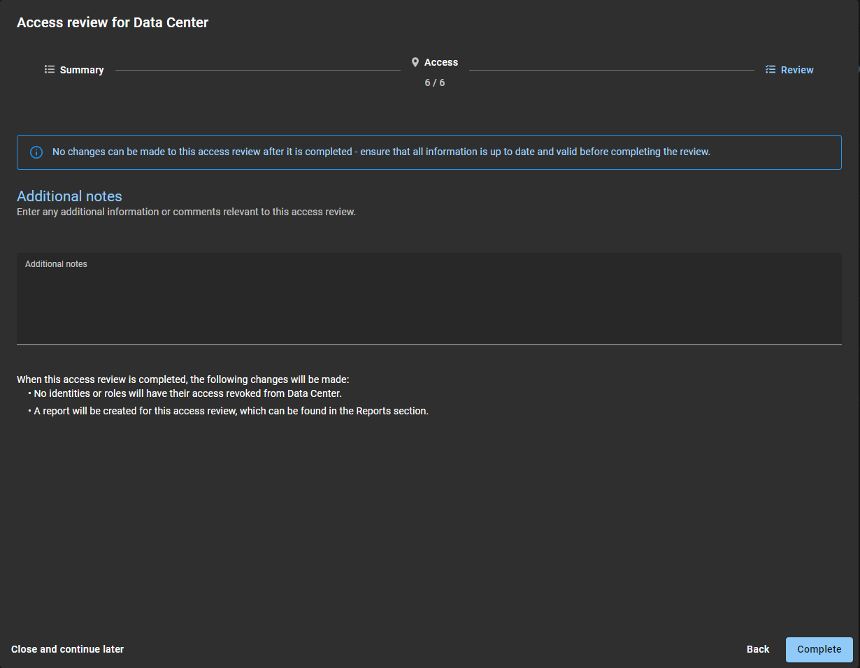 • No se pueden realizar cambios en una revisión de acceso después de que se haya completado.