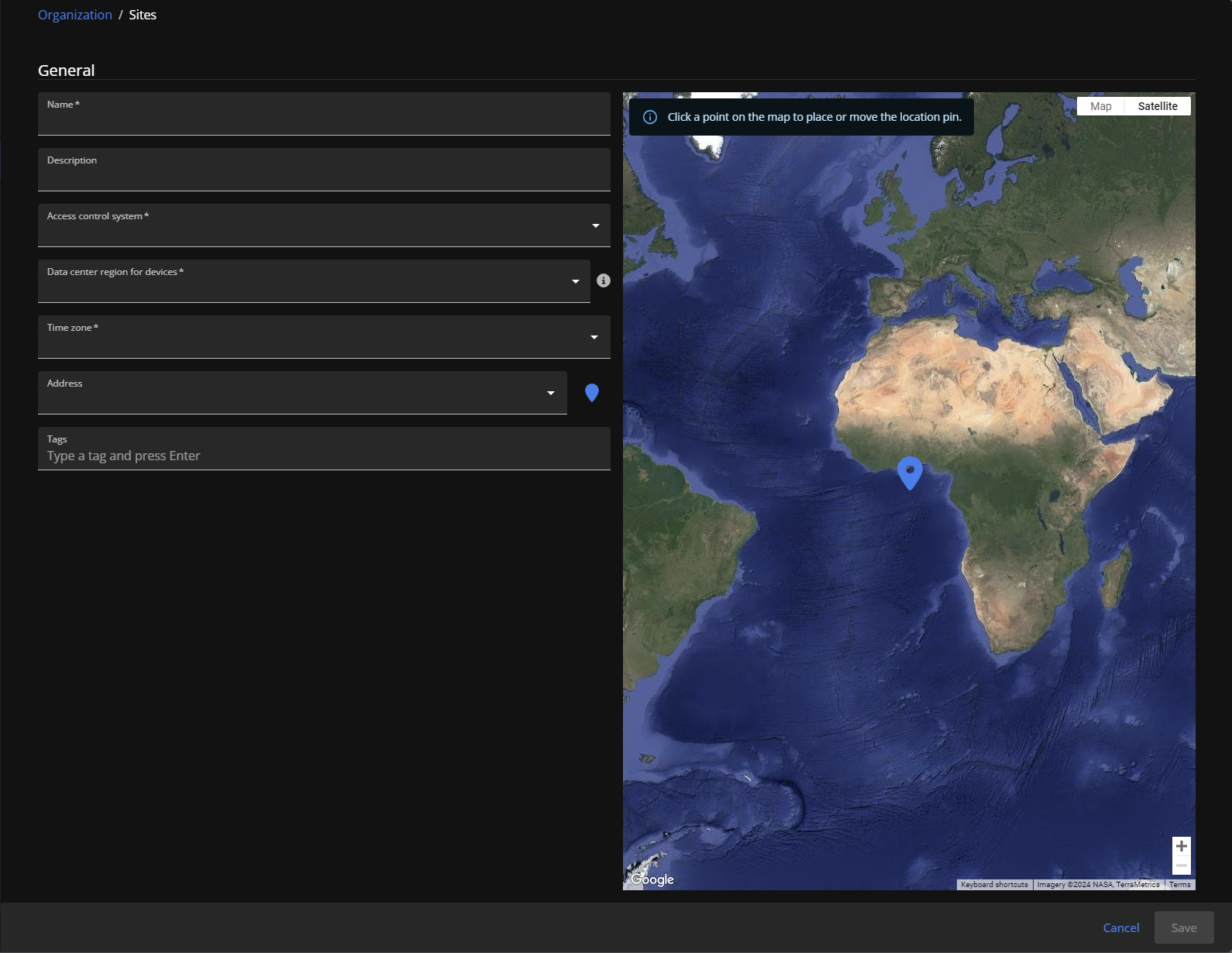 Introduzca una dirección para el sitio. A medida que escribe, la función de autocompletar de integración de Google Maps procesa la información y muestra las direcciones disponibles.
