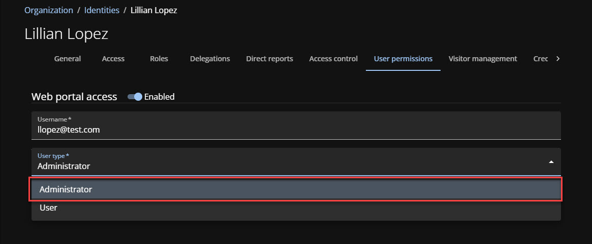 Antes de que un administrador pueda tener acceso al portal web Genetec ClearID™, debe otorgarle los permisos necesarios para el sitio web.